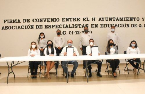 Puerto Morelos, Quintana Roo, 07 de diciembre de 2020.- Con la finalidad de promover intercambios operativos en el campo de la educación e investigación, así como cursos y servicios en contabilidad y administración, entre otras materias, el gobierno de Puerto Morelos, encabezado por la alcaldesa Laura Fernández Piña, firmó un convenio de colaboración con la Asociación de Especialistas en Educación de Quintana Roo (AEEQROO).