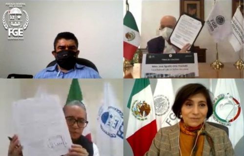 Cancún, Quintana Roo, 3 de diciembre 2020.- La Fiscalía General del Estado de Quintana Roo informa que, con el objetivo de fortalecer esfuerzos de coordinación encaminados a la vigilancia y prevalencia del respeto a la ley en los procesos electorales del 2021 y 2022, -a través de una videoconferencia- el Fiscal Mtro. Óscar Montes de Oca Rosales firmó un acuerdo de colaboración con el Mtro. José Agustín Ortiz Pinchetti, titular de la Fiscalía Especializada en Delitos Electorales (FEDE) de la FGR.