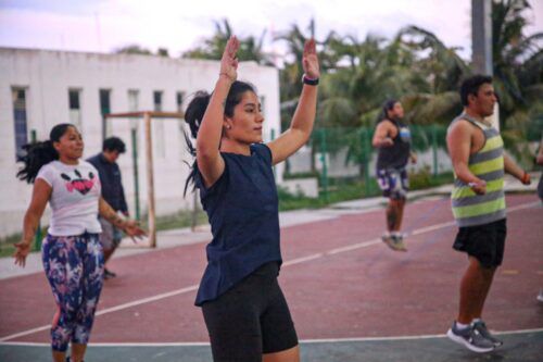 “Conforme el semáforo estatal nos lo marca, hemos adecuado los espacios deportivos en Isla Mujeres, para que los niños y jóvenes del municipio continúen con actividades deportivas, recordemos que habíamos activado las clases de box gratuitas tanto en la ínsula como en la Zona Continental, ahora en color naranja, un aproximado de 15 personas realizan entrenamiento funcional en este domo”, comentó.