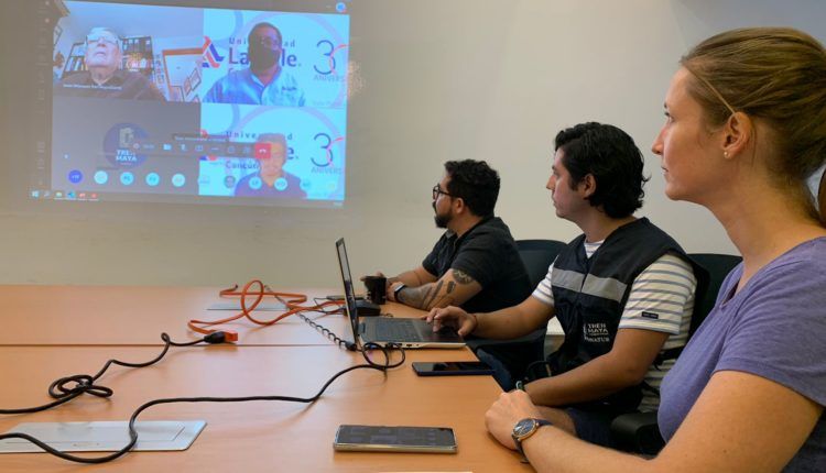 Cancún, Quintana Roo, 30 de octubre de 2021.- El Fondo Nacional de Fomento al Turismo (Fonatur) presentó el proyecto Tren Maya a estudiantes de la carrera de ingeniería civil de la Universidad La Salle Cancún, con el objetivo de que conozcan las bondades, especificaciones técnicas, científicas y ambientales que traerá la obra en beneficio de los habitantes de este destino turístico.