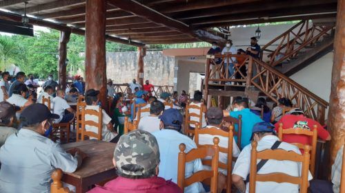 Lilia González Moreno, Enlace Territorial de Tren Maya en el Tramo 6, encabezó la representación la mesa de concertación con el Ejido de Cobá, donde también participaron representantes de la SEGOB y del INAH en Quintana Roo, así como una comisión de integrantes del Comisariado Ejidal de Cobá que preside Fausto May.