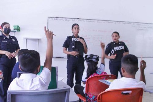 Playa del Carmen.- En beneficio de más de seis mil niñas, niños y jóvenes, el gobierno que encabeza la presidenta municipal Lili Campos, a través de la Secretaría de Seguridad Pública y Tránsito Municipal, ha realizado más de 250 actividades para fomentar la prevención en las escuelas.