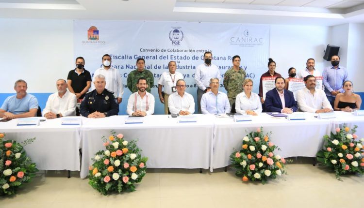 Playa del Carmen.- Para evitar que empresarios restauranteros sean víctimas de la delincuencia organizada, la presidenta municipal Lili Campos atestiguó la firma de un convenio de colaboración entre la Cámara Nacional de la Industria Restaurantera y Alimentos Condimentados (Canirac) y la Fiscalía General del Estado (FGE).