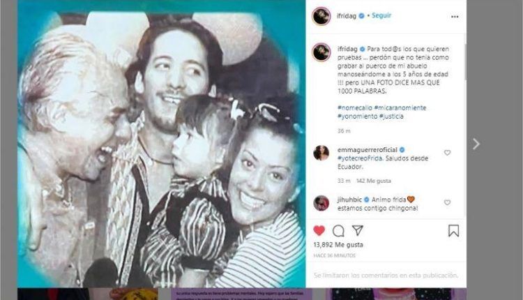“Para tod@s los que quieren pruebas … perdón que no tenia como grabar al puerco de mi abuelo manoseándome a los 5 años de edad !!! pero UNA FOTO DICE MAS QUE 1000 PALABRAS” escribió la nieta de Silvia Pinal en una imagen que compartió en su cuenta de Instagram.