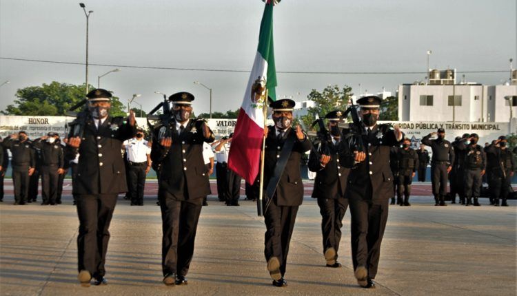 Playa del Carmen, a 11 de octubre de 2021.- Reconocido como héroe, con un último pase de lista y toque de silencio, fue despedido el policía municipal, Roberto Carlos Jiménez Osorio, fallecido en cumplimiento de su deber el pasado 9 de octubre, por un cobarde ataque en respuesta a las acciones de seguridad.