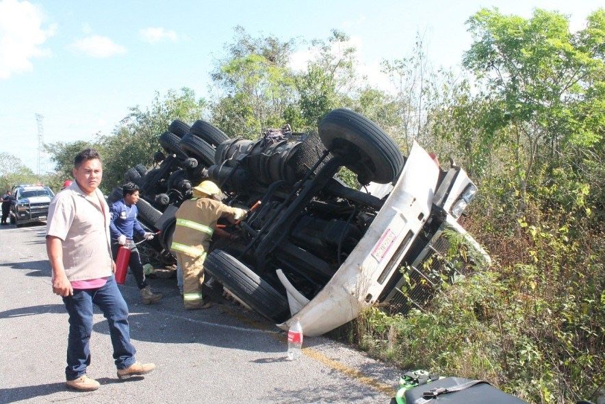 El accidente dificultó la circulación vehicular, debiendo los policías regular el paso de vehículos en el único carril que quedó libre, en esta vía entre Cancún y Chiquilá.