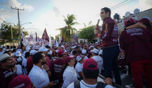 Este sábado, el candidato de la coalición Sigamos Haciendo Historia, continuó con las visitas casa por casa para conocer de cerca las inquietudes de los ciudadanos de a pie, en esta ocasión en la región 103, acompañado de la candidata a la presidencia municipal de Benito Juárez, Ana Paty Peralta.