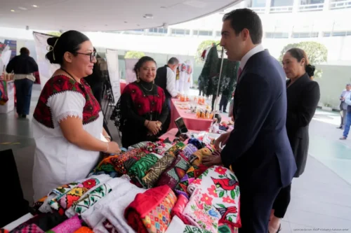 El senador inauguró la exposición “Raíces que Emprenden”, que exhibe textiles, artesanías y productos que reflejan la identidad cultural del estado