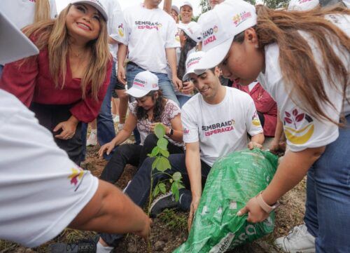 En otro punto de la ciudad, el senador encabezó el programa de arborización “Sembrando Esperanza”, con la participación de más de 350 voluntarios y estudiantes del CECYTE, Cobach y la UT, quienes plantaron alrededor de 250 árboles forestales endémicos de la región como el balché y x´canlo’ol.