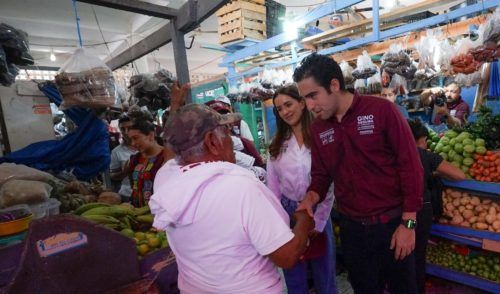 La jornada no solo fue de trabajo, sino también de convivencia. Gino compartió con la gente, disfrutando de los sabores auténticos de la región. No pudo resistirse a unos deliciosos tacos de chicharra, preparados ahí mismo por locatarios del mercado.