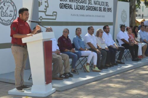 Playa del Carmen.– En un emotivo acto cívico realizado esta mañana en la Plaza 28 de Julio, autoridades municipales rindieron homenaje al expresidente de México, General Lázaro Cárdenas del Río, en el 130 aniversario de su natalicio.