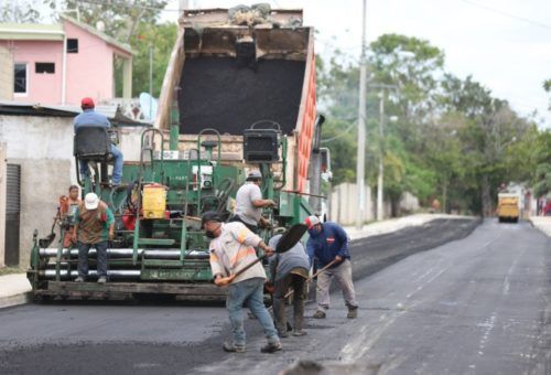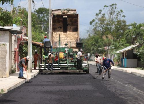 Esta tarde, el secretario municipal de Obras y Servicios Públicos, Antonio Velázquez Betancourt, supervisó la colocación del asfalto en la calle Hacienda Santa María, que es una de las principales vialidades de la localidad que conecta la carretera Cancún-Valladolid con la zona del domo deportivo y el cenote.