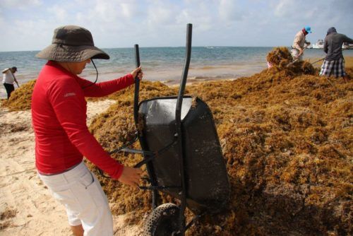 Un ejército de trabajadores llegan todos los días desde temprana hora para retirar la macro alga de las playas del destino
