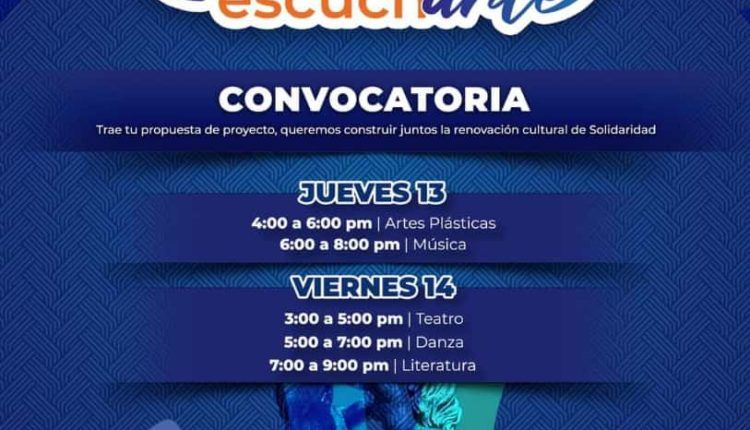 Toda la comunidad artística de Playa del Carmen y Puerto Aventuras podrá participar en el programa “Quiero Escucharte” que se realizará en cinco sesiones organizadas de la siguiente manera: El jueves 13 de abril a las 4:00 será para artes plásticas; de 6:00 a 8:00 p.m., para música. El viernes 14 a las 3:00 p.m. será para teatro, a las 5:00 p.m. danza, finalizando con literatura a las 9 de la noche. Deberán llevar su proyecto con un registro previo a través del siguiente link https://bit.ly/40InSvn
