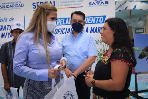 Playa del Carmen.- Con el objetivo de impulsar la reactivación económica de Solidaridad mediante productos locales, la presidenta municipal, Lili Campos Miranda, a través de la secretaría de desarrollo económico y atracción de inversiones llevó a cabo el relanzamiento de la marca “Hecho en Playa del Carmen”, al mismo tiempo que se realizó la toma de protesta a integrantes artesanos de la cooperativa Miyat’s.