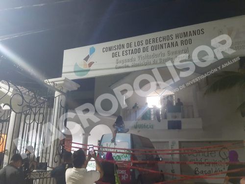 La mujeres, con el rostro cubierto, ingresaron a las oficinas de la Cdhqroo, ubicadas en la manzana 5, de la citada supermanzana, calle Pecari, al rededor de las 19 horas, tomaron las instalaciones, colocaron en la entrada cinta roja y de inmediato grafitearon la fachada.