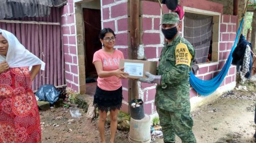 Cancún, Quintana Roo, 12 de noviembre 2020.- La Secretaría de la Defensa Nacional entregara mil 601 despensa y 20 láminas como parte de las afectaciones que se registraron en los municipios de Tulum, Cozumel Solidaridad y Puerto Morelos, por los últimos huracanes que asotaron las costas quintanarroenses.