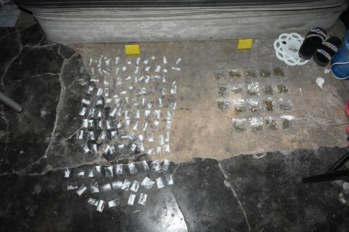 El primer cateo tuvo lugar en un inmueble ubicado en la calle Sagitario Oriente entre Orión Norte y Beta Norte, donde aseguraron fragmentos de color blanco con características similares al cristal y vegetal verde y seco parecido a la marihuana. Afuera de esta vivienda, fue detenido Alan “N”, quien al momento de realizarle una inspección, le encontraron diversas sustancias similares a estupefacientes.