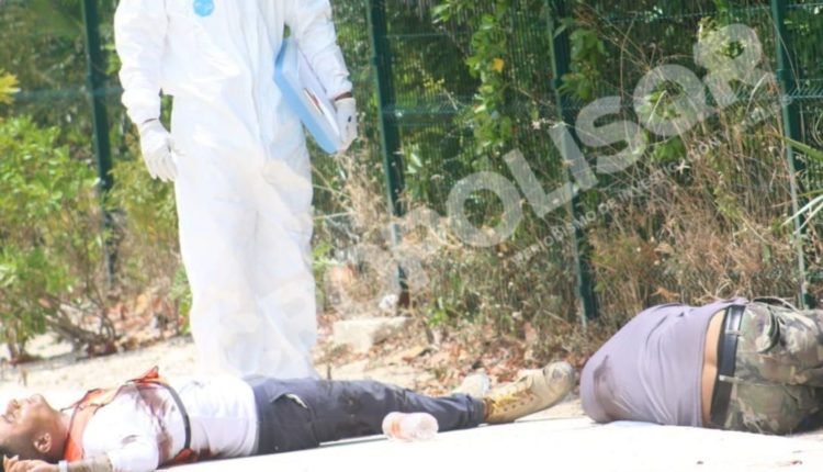 Las víctimas fueron localizadas en un área verde cerca del hotel Paladium, y fueron valorados por una ambulancia la empresa Jet Medical quién determinó que ambos sujetos ya no contaban con los signos vitales.