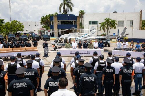 Destacó que Playa del Carmen se ha consolidado como referente nacional en profesionalización y equipamiento policial. “En solo siete meses también se ha logrado una inversión histórica en equipo, patrullas, uniformes, tabletas y un helicóptero policial”.