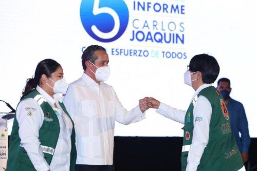 Y lo logramos contra viento y marea, con pandemia, sargazo, desastres naturales, gracias al esfuerzo de todas y todos, añadió Carlos Joaquín en un apretado resumen de logros obtenidos en 5 años de gobierno.