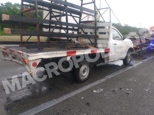 El percance sucedió sobre la carretera federal altura de punta venado cuando una pieza de metal de un tráiler que circulaba por la zona se cayó y ocasionó que el conductor de una camioneta Nissan np30 color blanco con placas SZ-1292-J. Frenara de manera fuerte y ocasionará que la conductora de un vehículo particular honda crv color negro con placas UVF- 644-E. Lo impactara por alcance.