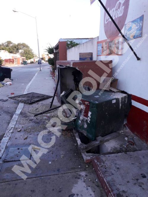 Playa del Carmen,Quintana Roo, 22 de marzo de 2021.-Ebrio conductor que circulaba a exceso de velocidad colisionó contra la pared de una tienda de abarrotes y destruyó un registro de electricidad de la CFE.