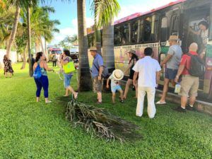 No se reportó lesionados, solo daños materiales que ascienden a más de 50 mil pesos; al mismo tiempo llegó otro autobús de Xcaret para transportar a los turistas a su destino. Y se pidió la reparación de la palmera.