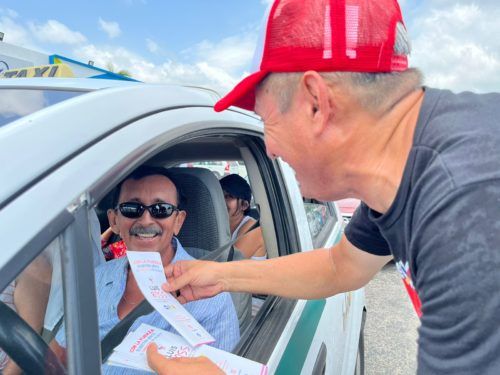 Al realizar un volanteo en el cruce de la Av. López Portillo con Av. Chacmool, el candidato por el Distrito 3 afirmó que es necesario volver a trabajar denla mano entre el gobierno, legisladores y padres de familia para retomar la reforma educativa y garantizar un mejor nivel de enseñanza.