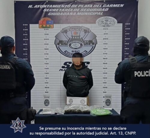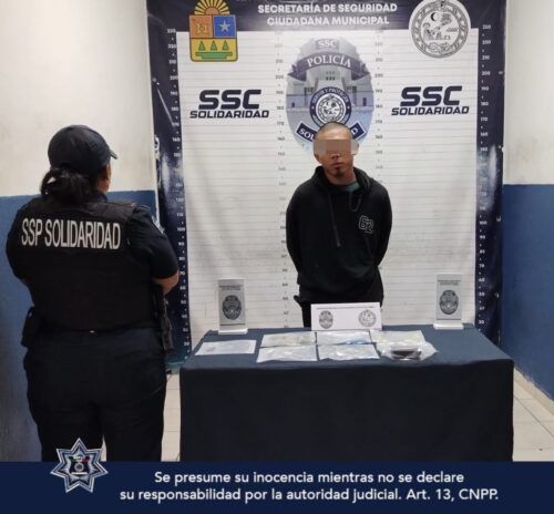 Jonatan “N”, de 22 años, originario de Quintana Roo, fue asegurado y puesto a disposición de la Fiscalía Especializada en Delitos Contra la Salud en su Modalidad de Narcomenudeo para los fines legales correspondientes.