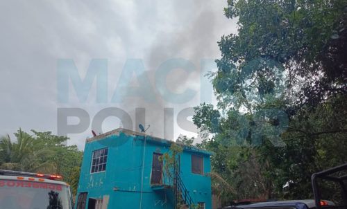 Playa del Carmen, 28 de julio del 2023 (Macropolis QR).-Incendio de una palapa en el asentamiento irregular conocido como Cristo rey generó la movilización de cuerpos de emergencia.