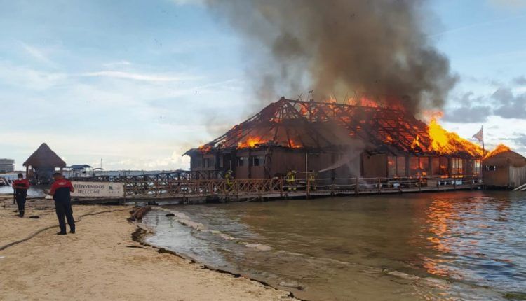 Cancún, Quintana Roo, 19 de noviembre de 2021.- Sin víctimas que lamentar, un incendio consumió por completo la palapa de un restaurante ubicado en la orilla de la playa concesionada al hotel Imperial Las Perlas de Cancún.