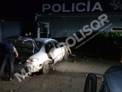 Playa del Carmen, Quintana Roo, 16 de septiembre 2020 .- Lanzan y explota una granada frente a las instalaciones de la policía de Quintana Roo, sujetos a bordo de un vehículo del cual no se determina si fue un automóvil o una motocicleta, alrededor de la 1:00 de la mañana en un ataque directo contra la corporación policíaca.