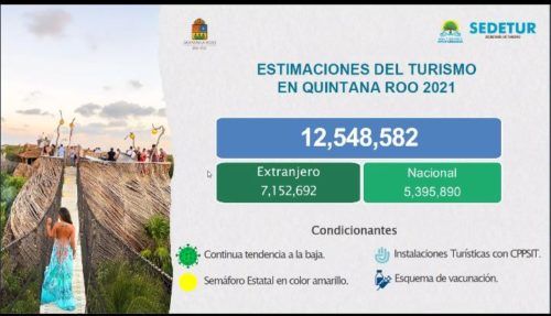 El Encargado del Despacho de la Secretaría Estatal de Turismo (SEDETUR), Andrés Aguilar Becerril reconoció que la prevención sanitaria, así como la aplicación de más de 2 millones de dosis, y la gran conectividad aérea con más de 100 ciudades de México y el extanjero, han permitido convertir al Caribe Mexicano en un destino seguro y atractivo para los visitantes lo que permitirá cerrar este año con más de 12.5 millones de turistas, de los cuáles 7 millones serán extranjeros y 5 millones nacionales.