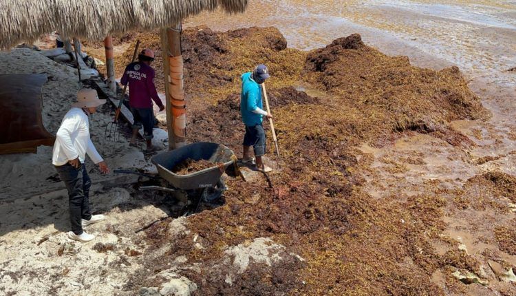 Playa del Carmen. – Detenidos por faltas administrativas optan por recoger sargazo que pagar multas para ser liberados.