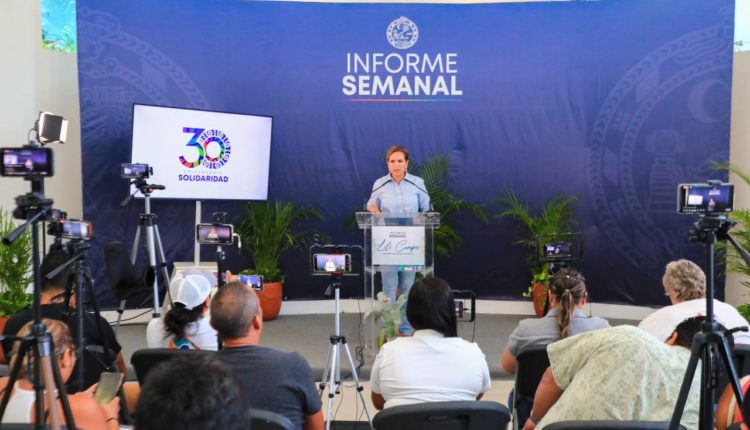 Playa del Carmen (Macropolis QR).- Durante su informe semanal, la presidenta de Solidaridad Lili Campos, anunció que este sábado inicia el programa “Pinta tu fachada”, cuya primera etapa iniciará en El Petén, La Guadalupana y Villas Riviera para todos aquellos que cumplieron con el pago de su predial, con una amplia paleta de colores para elegir.