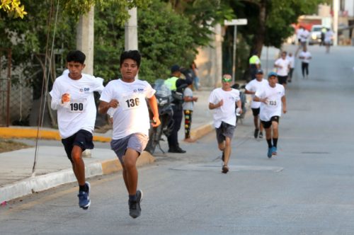 Decenas de personas corrieron por las principales calles de la localidad, saliendo del estacionamiento del supermercado Chedraui (Puerto Maya) hasta la sede de la Alcaldía, donde se llevó a cabo un convivio con presentaciones artísticas.