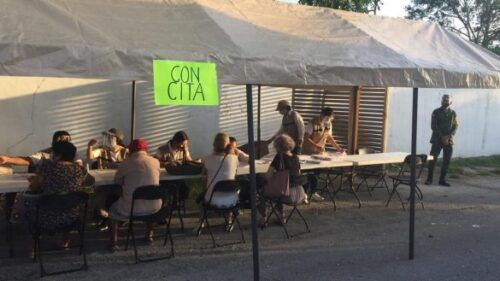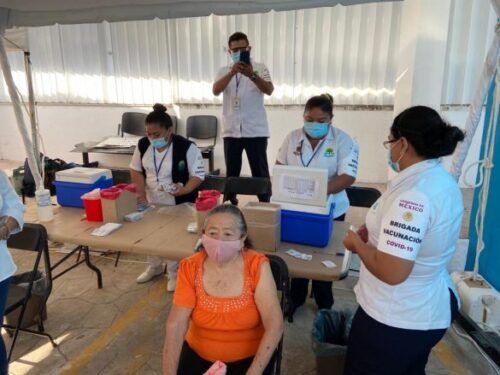 Para aplicar la vacunación de forma inmediata en los adultos mayores, en Leona Vicario, municipio de Puerto Morelos, se instalaron cuatro módulos de vacunación en el centro de salud, con la meta de aplicar dos mil 200 dosis en horario de nueve a 18 horas