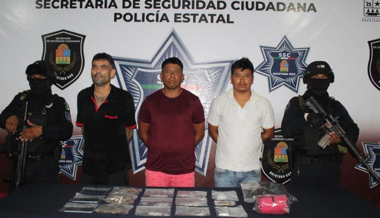 Cancún (Macropolis QR).- Jorge “N”, Inocente “N” y Humberto “N”, fueron detenidos por policías en Cancún cargados con varias dosis de drogas.