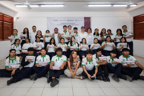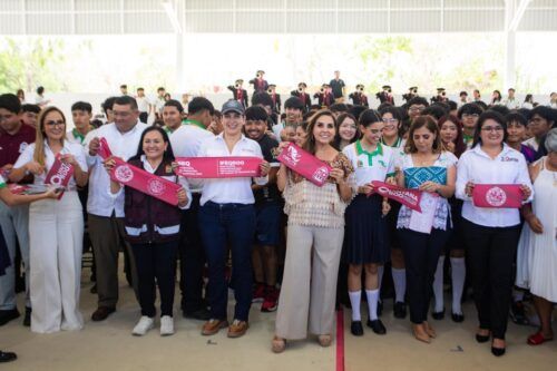 En su gira de trabajo por este municipio, Mara Lezama supervisó la remodelación del plantel, inauguró el domo de usos múltiples y entregó becas del programa “Benito Juárez” a 329 alumnos, además de la escritura pública del Cecyte Quintana Roo y reconocimientos a los integrantes de la banda de guerra que obtuvieron el primer lugar en el Festival Nacional de Arte y Cultura.