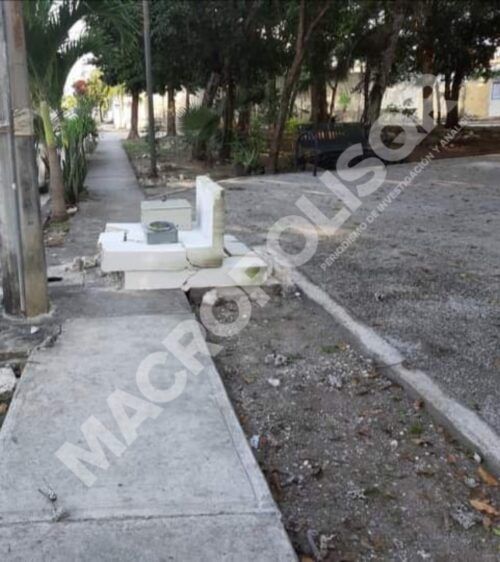 Cabe mencionar que la estructura perteneciente al municipio de Puerto Morelos a cargo de Laura Fernández piña, no estaba construido de manera correcta pues quedó al descubierto que esta no contaba con varillas, solamente unos tubos de PVC lo sostenían.