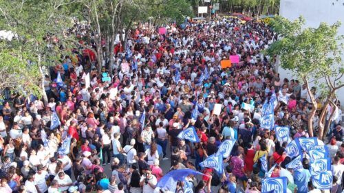 Playa del Carmen.- Ante una gran concentración de solidarenses, simpatizantes y militantes del Partido Acción Nacional (PAN) y del Partido Revolucionario Institucional (PRI), Lili Campos se inscribió ante el IEQROO (Instituto Electoral de Quintana Roo) en busca de la reelección como candidata a la presidencia municipal de Solidaridad.