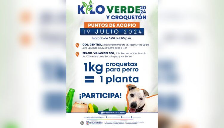 Playa del Carmen. – Con el objetivo de cuidar el medio ambiente, pero también ayudar a los perritos rescatados que se encuentran en resguardo en el santuario animal, el gobierno de Solidaridad que dirige la presidenta Lili Campos por medio de la Secretaría de Medio Ambiente Sustentable y Cambio Climático, realizarán el próximo Kilo Verde y Croquetón este 19 de julio.