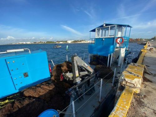 Las grandes marejadas provocan que las barreras antisargazo sean superadas por arriba y por abajo, las condiciones del clima impiden que las lanchas sargaceras puedan navegar.