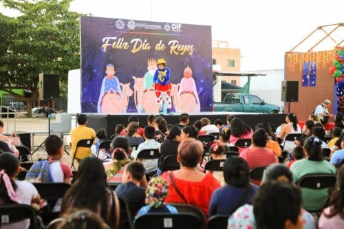 Playa del Carmen.- Con motivo del Día de Reyes y con la asistencia de más de 2 mil personas, el gobierno de Lili Campos compartió una rosca de reyes de 45 metros en la alcaldía de Puerto Aventuras, completando la diversión con un festival para la sana convivencia entre las familias solidarenses.