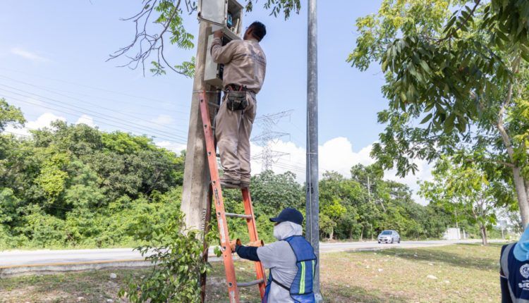 El gobierno municipal y FONATUR realizan esfuerzo conjunto para instalar 160 postes y 320 lámparas y reducir áreas oscuras sobre la carretera federal 307