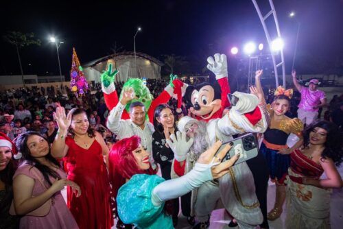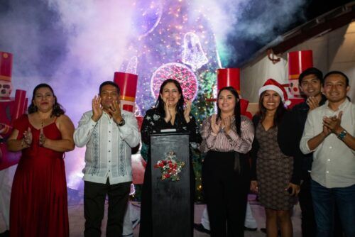 Puerto Aventuras. — La presidenta municipal Estefanía Mercado encendió las luces del majestuoso Árbol de Navidad, en la Plaza Cívica de la Alcaldía, donde se presentó el grupo artístico-musical “Mundo Mágico Infantil”, en el marco del programa “Navidad Mágica” para llevar paz, diversión y armonía a las familias.