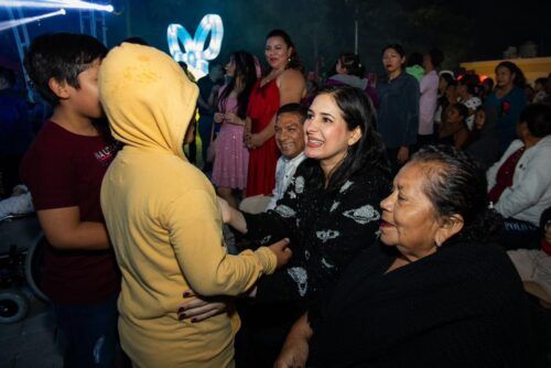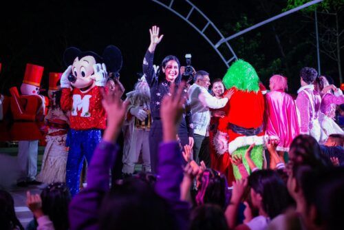 La presidenta municipal Estefanía Mercado enciende las luces de majestuoso Árbol de Navidad y convive con niñas y niños en el show “Mundo Mágico Infantil”
