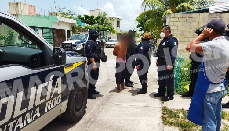 Cancun, a 12 de julio de 2021.-Al llegar los uniformados al lugar y entrevistarse con el agraviado, este refirió que el ahora detenido había ingresado a su negocio, amenazandolo con el cobro derecho de piso, asimismo, el presunto indicó que tenía un arma blanca y que le entregara todo el efectivo, logrando sustraer 1,500 pesos, para posteriormente salir corriendo.