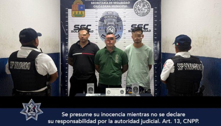 Playa del Carmen. – La Secretaría de Seguridad Ciudadana Municipal (SSCM) de Solidaridad informó sobre la detención de tres personas del sexo masculino por delitos contra la salud. Durante un operativo realizado en la colonia Centro, los agentes aseguraron 46 dosis de posibles narcóticos y un automóvil.